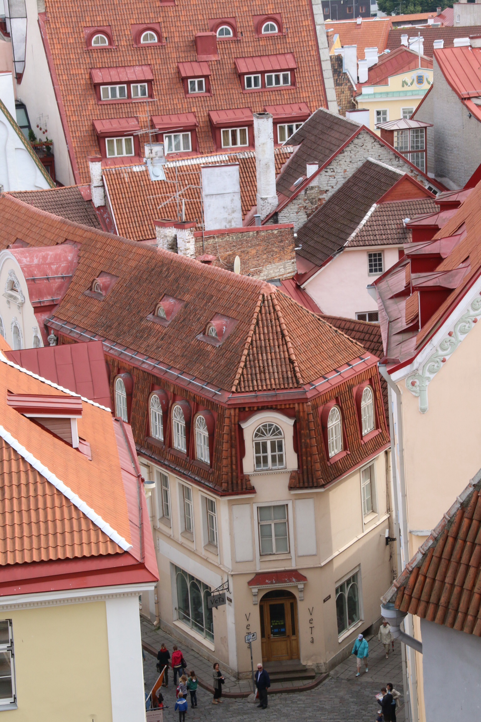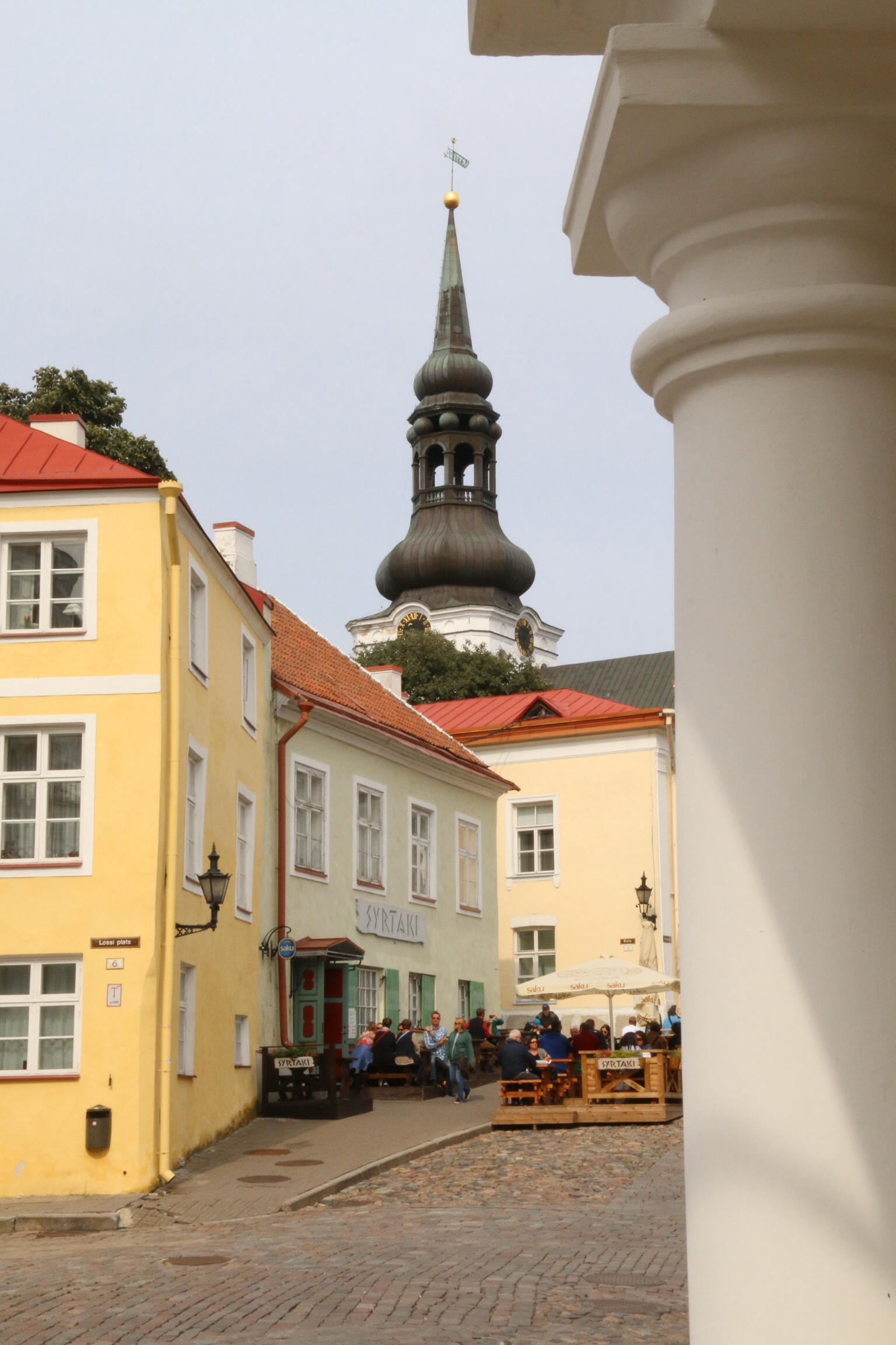 Then there was the town itself. Resplendent in many pastel shades, the buildings wind their way down from the two walls that circumnavigate the town though narrow cobbled lanes to a central square. As previously said, the town is Germanic in design. The German empire ran the place after all. But atop the city rises a Russian Orthodox Church, placed there during subsequent stewardship by Russia.