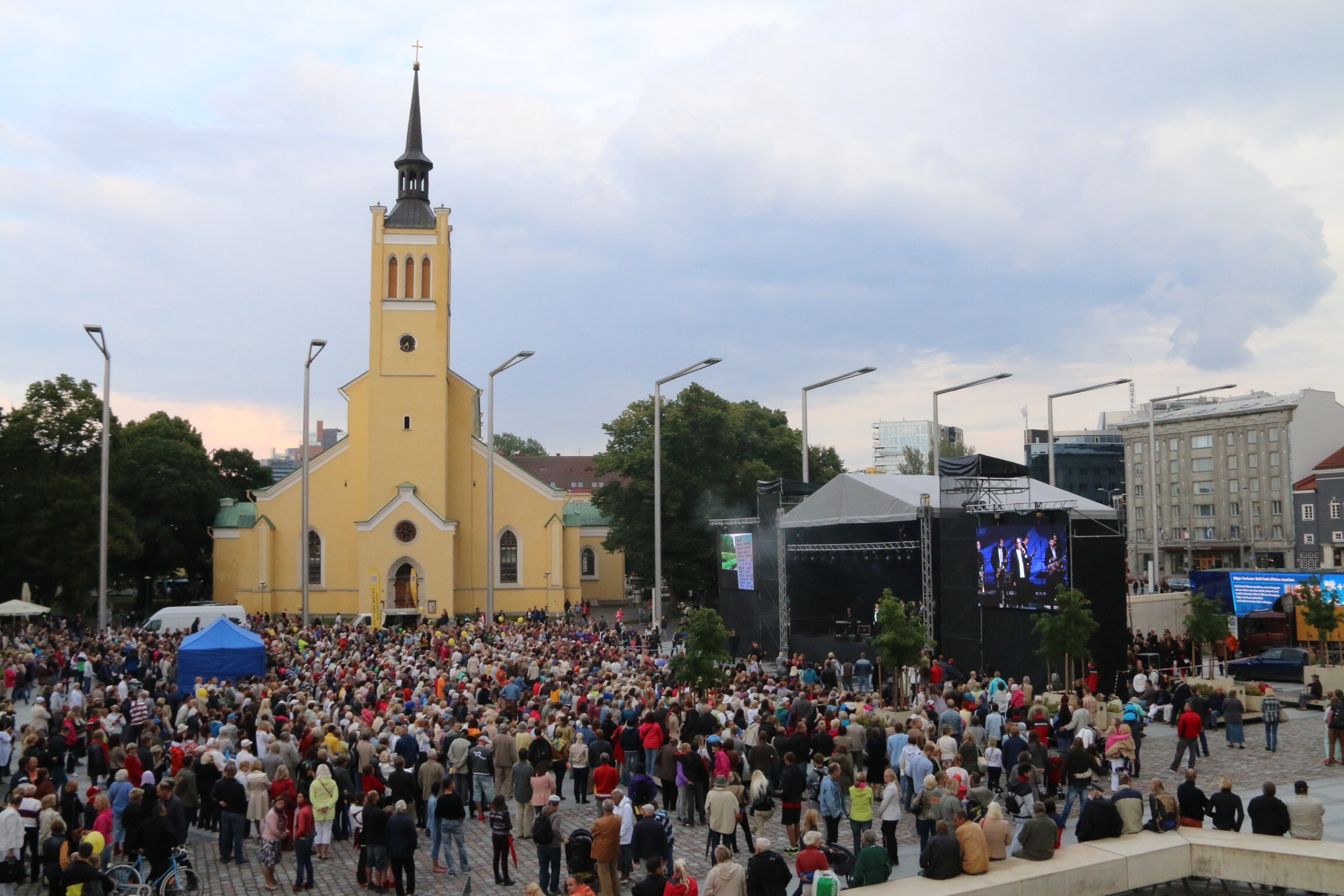 And to add to the atmosphere, a National festival. For on 23 August (also my sister’s birthday but we’ll wash over that) 1989, two million people joined hands to form a line from Tallinn, through Riga, to Vilnius; a distance of 360mls or 600km. This tri-nation expression of solidarity by Estonians, Latvians, and Lithuanians demonstrated their desire to move away from the control of the old Soviet Union. And this very weekend I was here for the 25th anniversary. The Saturday was a fest of singing and dancing, traditional dress, and flag waving; albeit slightly subdued but that’s the Estonian way.