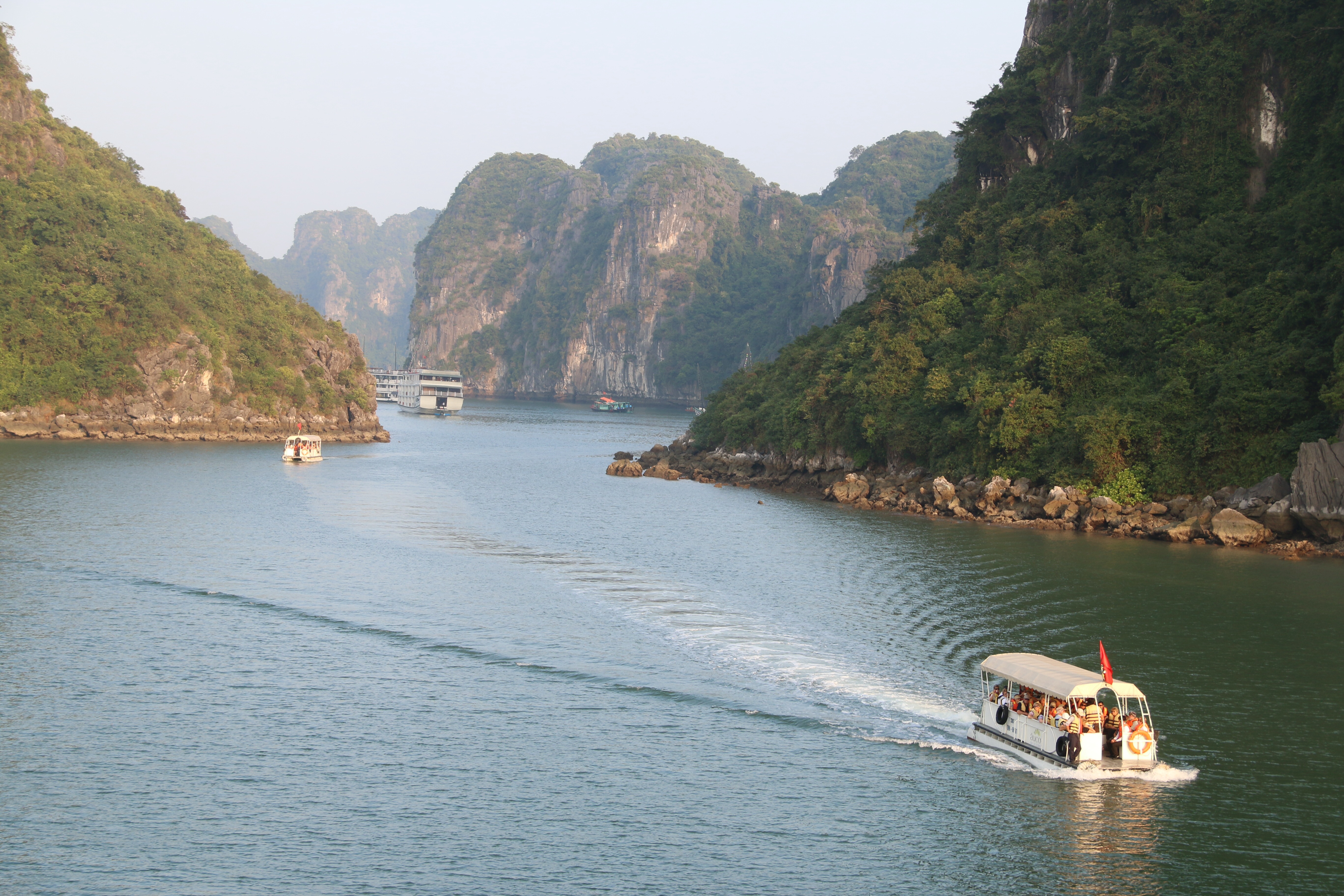 Down from the hills, Halong Bay was recently added to one of the current seven wonders of the world. And it lives up to expectations. The limestone monoliths rising from the calm waters are beautiful, and one hardly notices the flotilla of boats that travel out daily. The sunset and rise were sadly obscured by cloud, but breaks in the weather afforded opportunity for good photography.